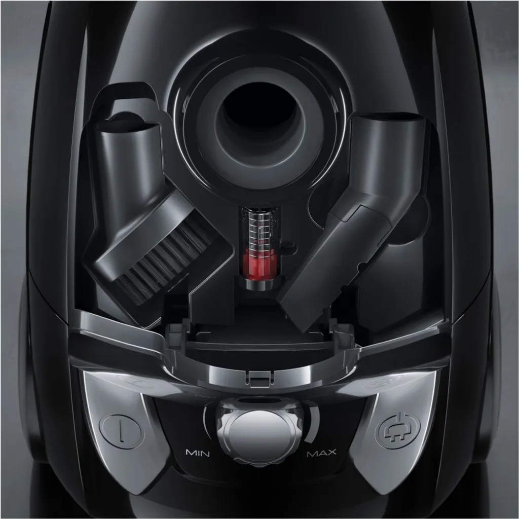 - Zubehör: Universal-/Bodendüse (umschaltbar), Fugen-, Polsterdüse