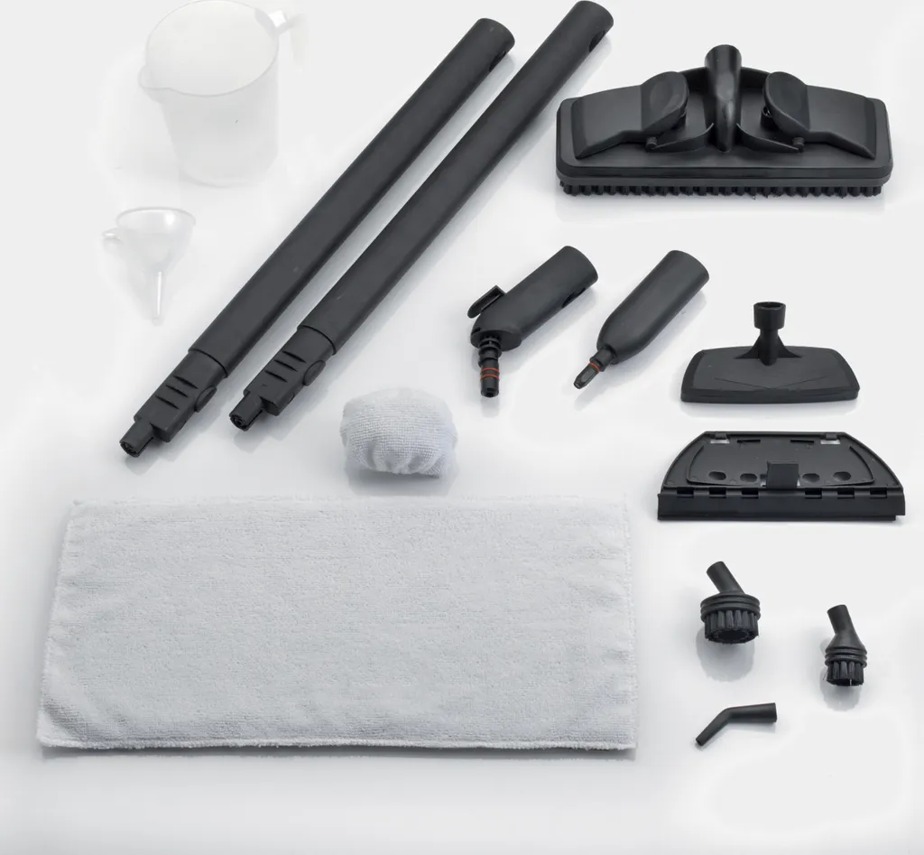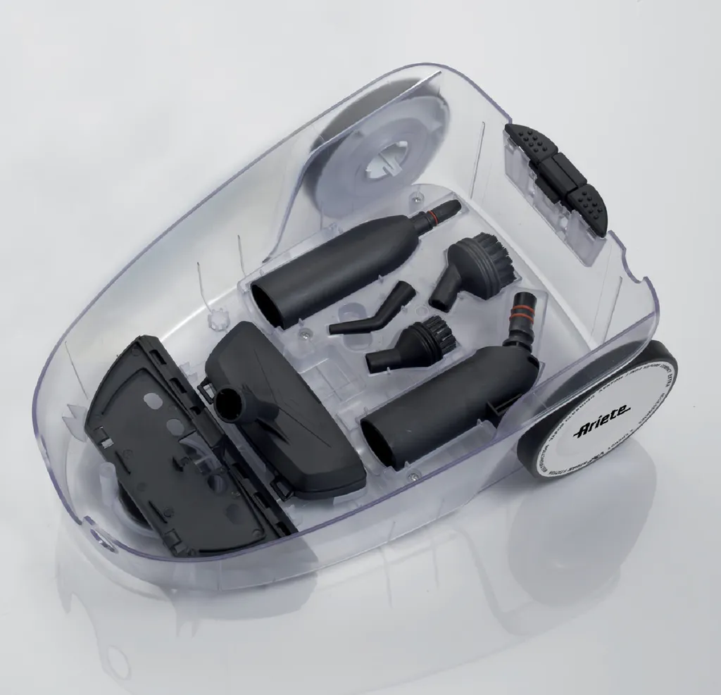 Ariete Dampfreiniger X Steam no Stop – Dampfreiniger mit 12-tlg. Zubehr-Set | Der leistungsstarke Dampfreiniger X Steam no Stop mit seinem reichhaltigen Zubehr ist ideal fr alle Reinigungsarbeiten im Haushalt. In kurzer Zeit ist X Steam no Stop einsatzbereit, um z. B. Bden, Fugen, Fettverkrustungen in der Kche, Kalk- und Schmutzablagerung im Bad, Verschmutzungen/Flecken im Teppich und von Textilien zu entfernen oder ganz einfach Fenster zu reinigen. Besonders hilf-reich ist hier das reichhaltige Zubehr, das sinnvoll direkt im Boden des X Steam no Stop in einem Fach verstaut ist und somit immer sofort zur Hand ist. Unsre Produkteigenschaften: Whrend des Betriebs nachfllbar | Leistungsstarke 4 bar Dampfdruck | Reichhaltiges Zubehr: 2 Verlngerungsrohre, 1 Adapter fr Dsen, 1 Fensterreinigungsdse, 1 Teppichbrste, 1 groáe + kleine runde Brste, 1 Hochdruckdse,1 Messbecher, 2 verschiedene Mikrofaserbezge, 1 Einflltrichter | In nur 4 min. ist der Dampfreiniger einsatzbereit | Praktischer ?Pistolengriff? fr einfaches und ermdungsarmes Arbeiten | Stufenlos regulierbare Dampfleistung | Befreit Kleidung und Textilien von unangenehmen Gerchen und reinigt ohne Chemie. | Befreit Oberflchen von Bakterien | Edelstahlboiler, Kapazitt Wassertank: 1,6 L | Kabellnge: 6 m, Dampfschlauchlnge: 1,35 m, mit Sicherheitsventil, 1.500 Watt