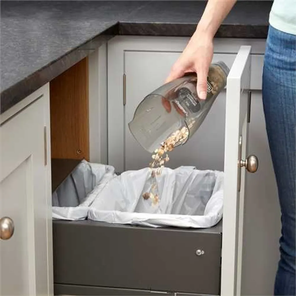- Schmutzfangbehälter: Lässt sich auf Knopfdruck einfach entfernen und ist spülmaschinenfest.
