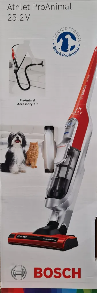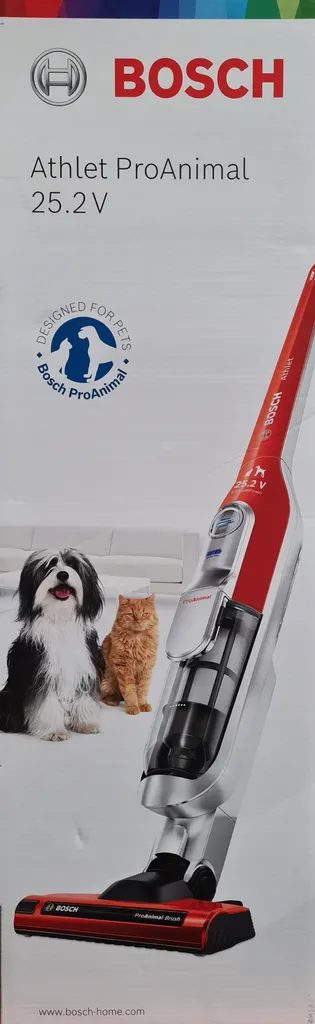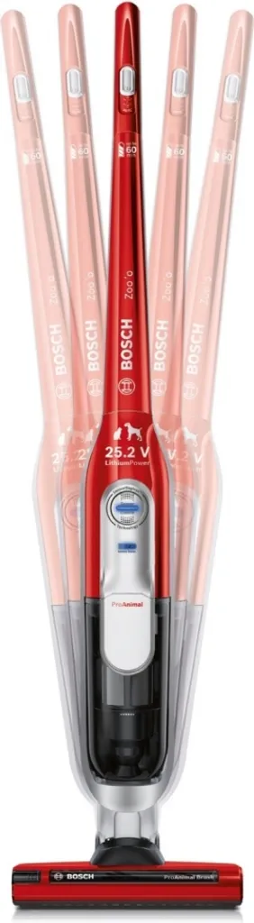 Bosch Athlet ProAnimal BCH6ZOOO kabelloser Akku-Staubsauger, beutellos, ideal für Tierhaare, bis zu 60 Min. Laufzeit – Rot