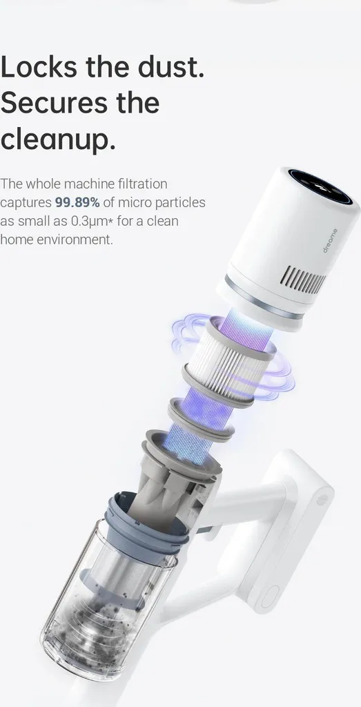 Die gesamte Maschinenfiltration erfasst 99,89 % der Mikropartikel mit einer Größe von nur 0,3 μm * für eine saubere häusliche Umgebung
