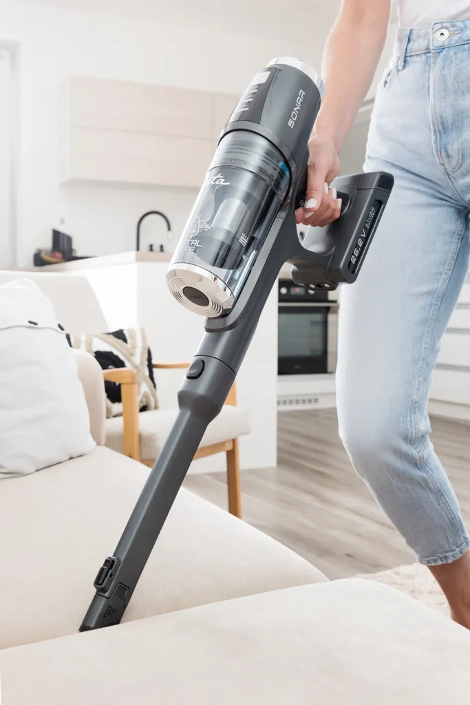 Genießen Sie die Freiheit der Bewegung ohne Kabel. Saugen Sie schnell und genau dort, wo Sie es brauchen. ETA Sonar wiegt nur 3 kg, so dass das Staubsaugen ein Vergnügen ist.