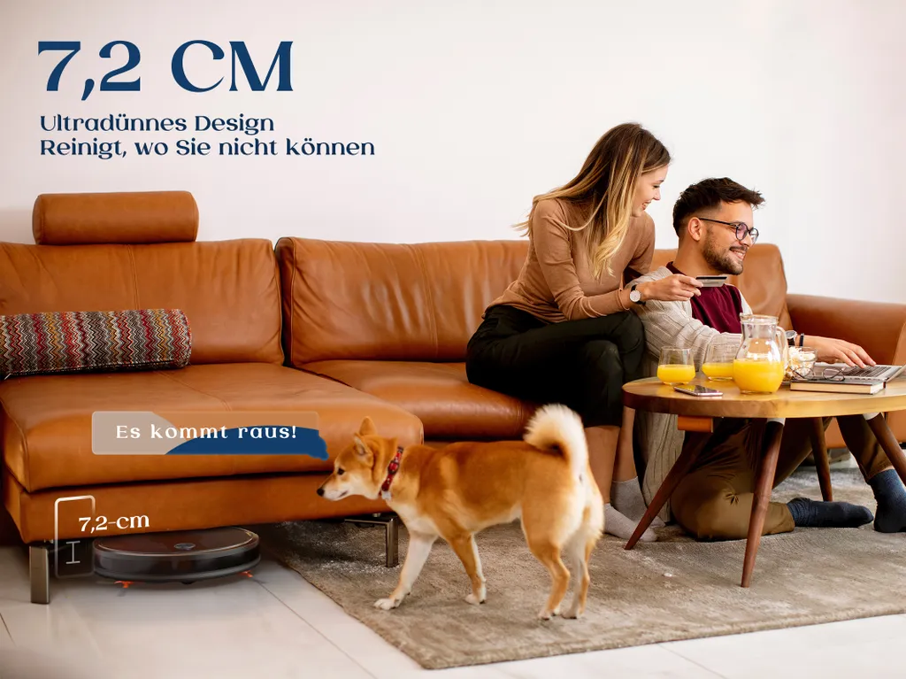 Mit niedrigsten Höhe von 7,2 cm kann leicht unter die Möbel zu Reinigen. Der Staubsauger Roboter erreicht jede Ecke und Kante und macht überall sauber machen.
