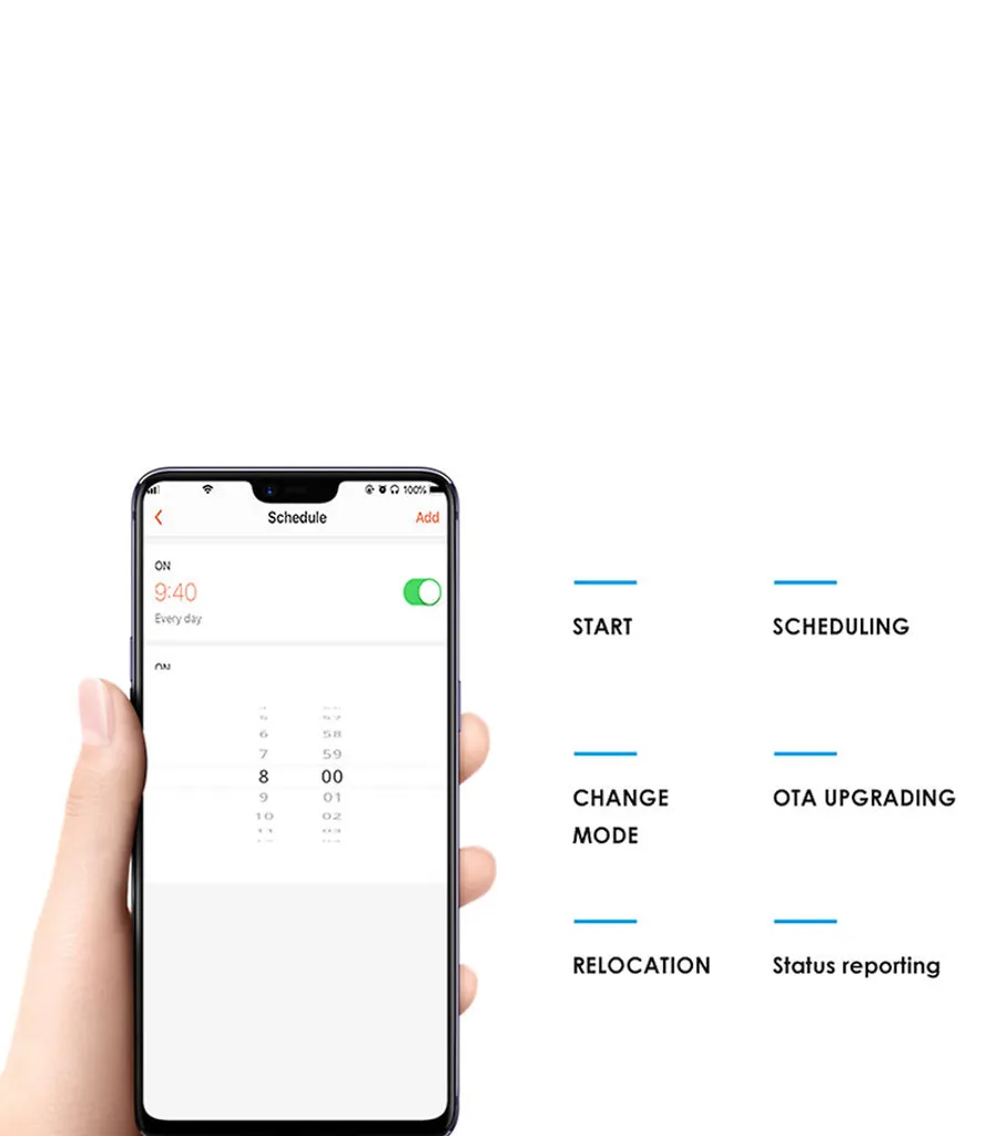 Wenn Sie nicht zu Hause sind, können Sie dank der Anwendung die Saugleistung des Roboters planen, einteilen und anpassen. Außerdem gibt es Befehle wie: Pause / Neustart / Aufladen des Roboters. Die Reinigung Ihres Hauses war noch nie so bequem.