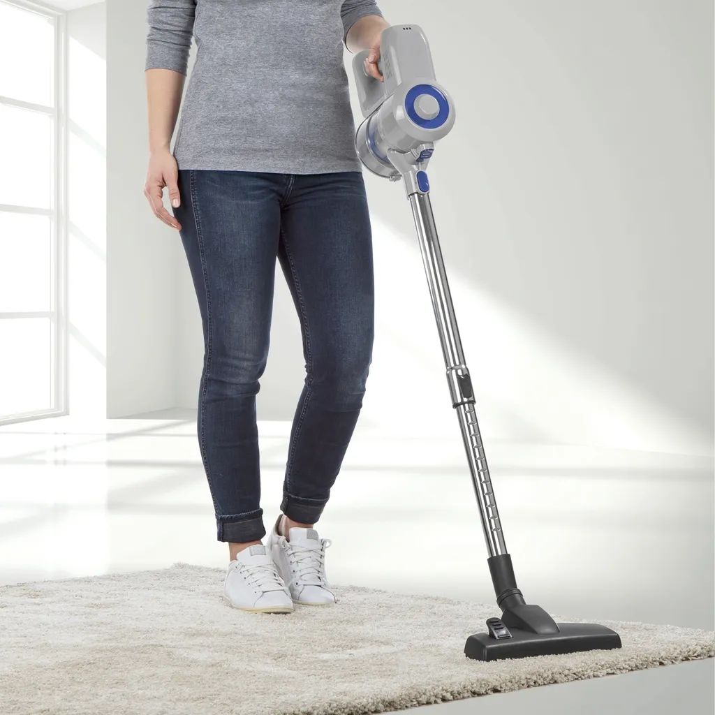 Setz ihn dir mit dem stabilen, verstellbaren Teleskoprohr einfach nach Bedarf zusammen. So befreist du Tastaturen, Möbel, Autositze, Teppichböden, Treppenstufen u.v.m. von Staub und Schmutz und kannst selbst Spinnweben an der Decke entfernen. Die Saugkraft des kabellosen Hand- und Bodenstaubsauger von lässt sich einfach in zwei Stufen regulieren und damit an deine Bedürfnisse anpassen. So gelangt der Schmutz sicher in den Sauger, durch den Edelstahl- und EPA-Filter 11 und landet schließlich im leicht entleerbaren 800-ml-Staubbehälter. Für deine klare, saubere Wohnung.
