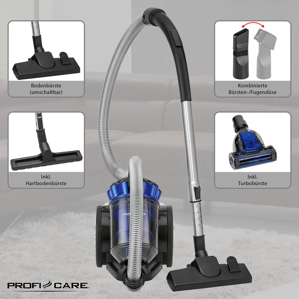 - Top Features — Sie erhalten maximale Flexibilität bei der Haushaltsarbeit dank höhenverstellbarem Edelstahl-Teleskoprohr (55-91 cm) sowie einer stufenlosen Leistungsregelung. Dank beutelloser Filtertechnik wird Ihnen das lästige und teuere Nachkaufen von Staubsaugerbeuteln erspart. Mit einem besonders langen Stromkabel bietet der Staubsauger von ProfiCare einen extra großen Aktionsradius von ca. 8, 3 m. Nach dem Gebrauch hilft Ihnen die praktische Parkhilfe beim platzsparenden Verstauen des Staubsaugers. Zusätzlich punktet der PC-BS 3040 mit einem Tragegriff und einer automatischen Kabelaufwicklung.