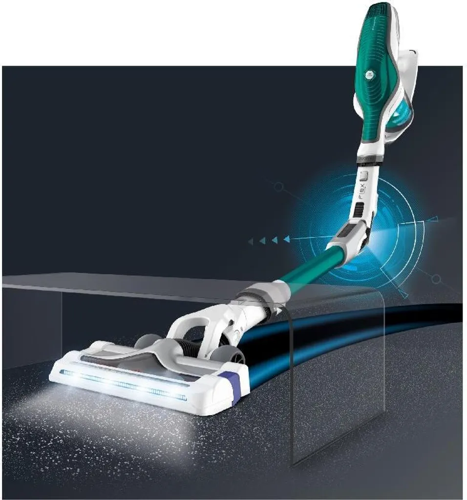 Mit dem Air Force flex und seinem flexiblen Rohr werden die schwierigsten Stellen, unter den Möbeln gereinigt, ohne sich zu beugen. Mit einer Saugleistung von 100 AirWatt und einer Laufzeit von 35 Minuten, entfernen Sie Staub auf allen Bodenarten (Parkett, Fliesen, Teppich).* Dank integrierten Möbelbürsten ist der Air Force Flex, sofort als Handstaubsauger einsetzbar.