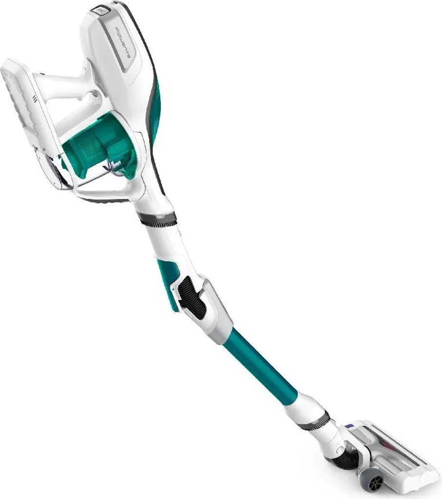Rowenta RH9472, Air Force Flex 560. Reinigungsart: Trocken, Schmutztrennungsmethode: Zyklonal, Geräuschpegel: 82 dB. Staubbehälter Typ: Beutellos, Schmutzaufnahmekapazität (Trockenanwendung): 0,4 l, Produktfarbe: Türkis, Weiß. Energiequelle: Batterie/Akku, Laufzeit: 35 min, Ladezeit: 3 h. Gewicht: 3 kg