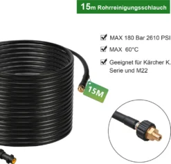 Wolketon 15m Rohrreinigungsschlauch Rohrreiniger Set Für Kärcher Kränzle K2 – K7 Hochdruckreiniger