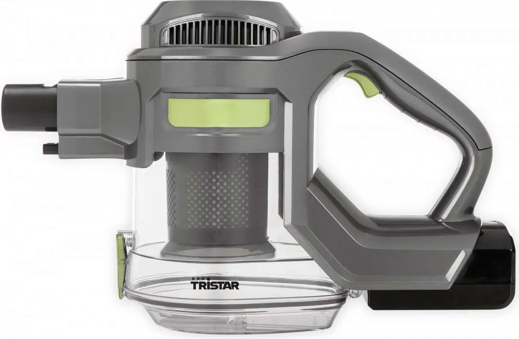 - Tristar Besenstaubsauger, Stick, großer Bodenkopf, kleiner Beschichtungskopf, HEPA-Filter, Lithium-Ionen-Akku, Netzteil, Aufbewahrungsbasis.